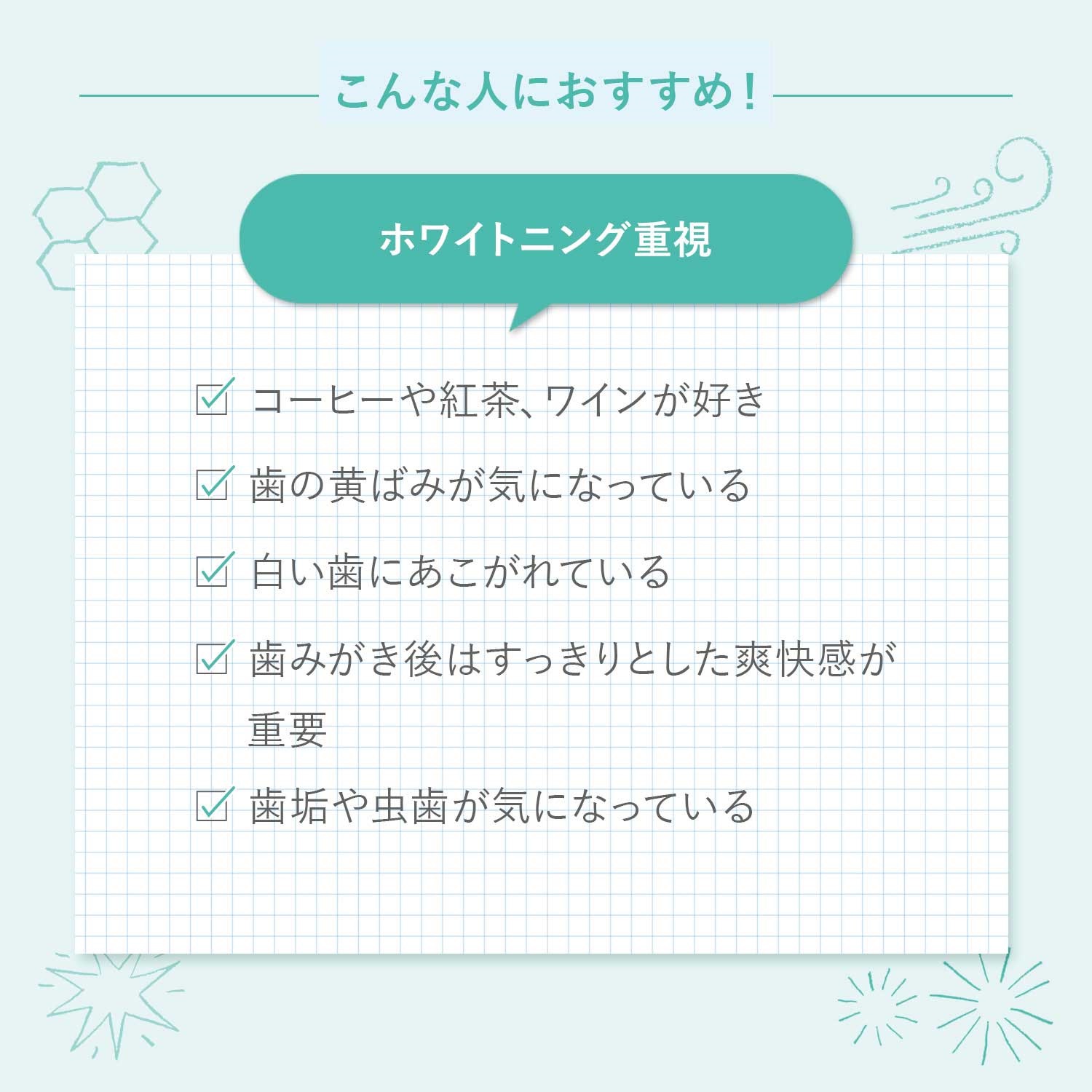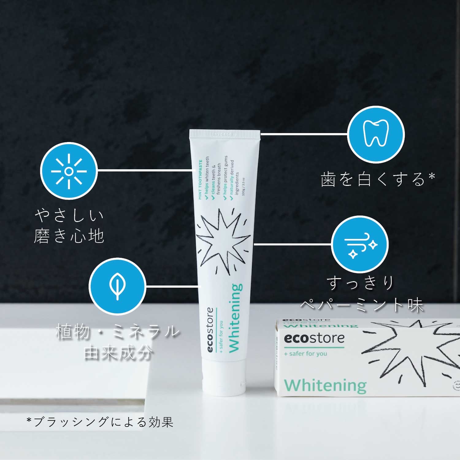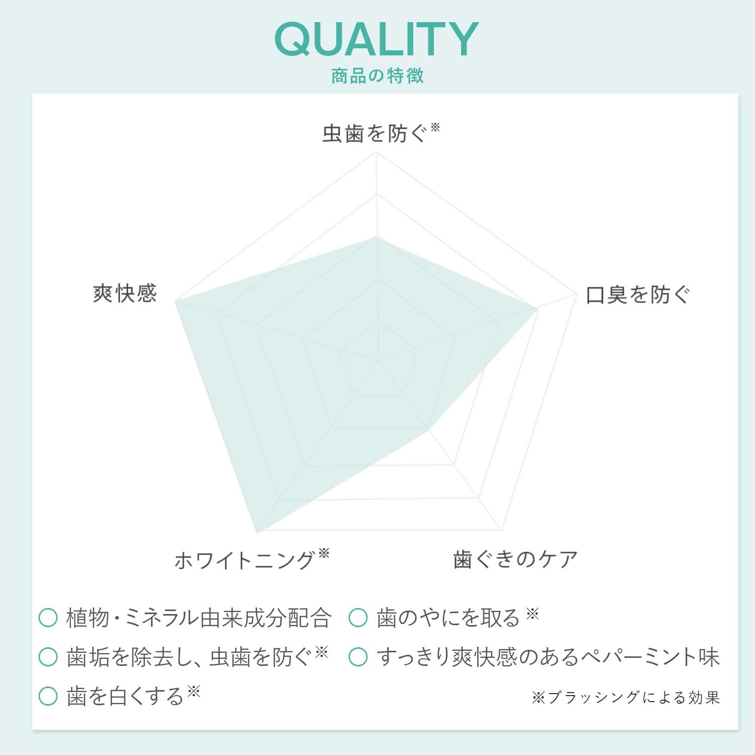 (*炭酸水素Na:研磨剤)(**ブラッシングによる効果)