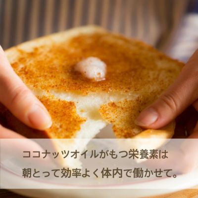 BROWN SUGAR 1ST.のココナッツオイルは、特にコーヒー・パンとの相性が抜群!「ココナッツオイル、気になっているけどまだ試したことがない。」そんな方はまず、朝ごはんのトーストに塗ってみてください。はちみつやシナモンを加えてハニーココナッツトーストもおすすめ。コーヒー、紅茶などの飲み物に加えて、健康な毎日の習慣にフレッシュなココナッツオイルの自然な美味しさをお楽しみください。